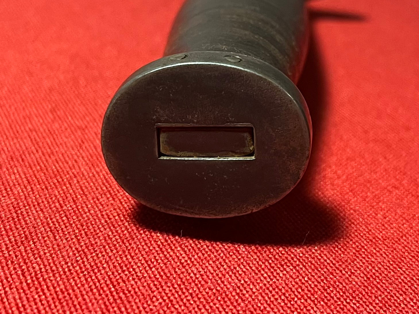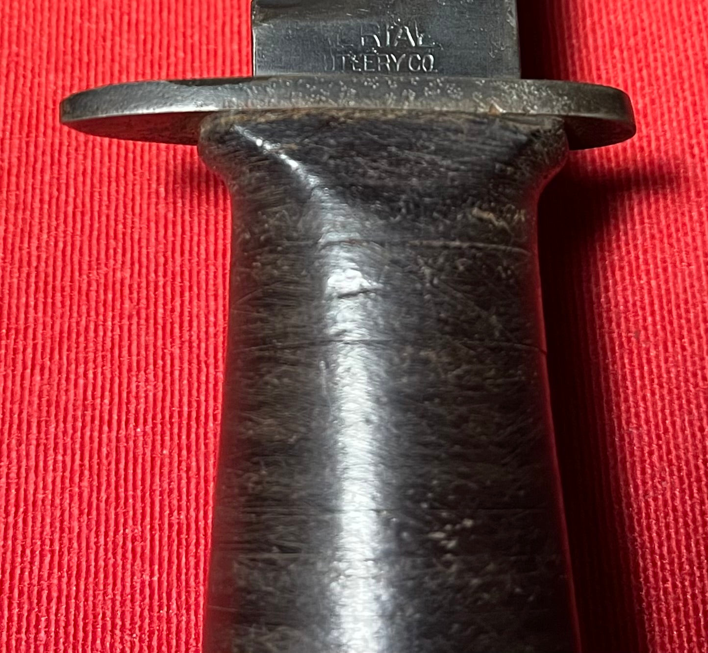 Authentic WW2 Era M3 fighting knife manufactured by Aerial Cutlery Co. of Marinette Wisconsin (Maker mark on ricasso) Black parkerized 6 inch blade with an overall length of 10 7/8 inches / US M8 Scabbard B.M. Co