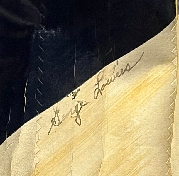 Now this is a fantastic piece of Military Aviation history of WWII. What we have here is a canvas insignia section from the wing due to its color as yellow was the main color of the wings. The section measures approximately 28-29.50 inches and is shrink wrapped to a foam board for hanging display (inside freely) This piece features the signatures of 6 pilots/instructors (One of which was KIA, information shown in photo area) Most of the signatures and writing is legible, but there are a few that can be difficult to read due to penmanship.