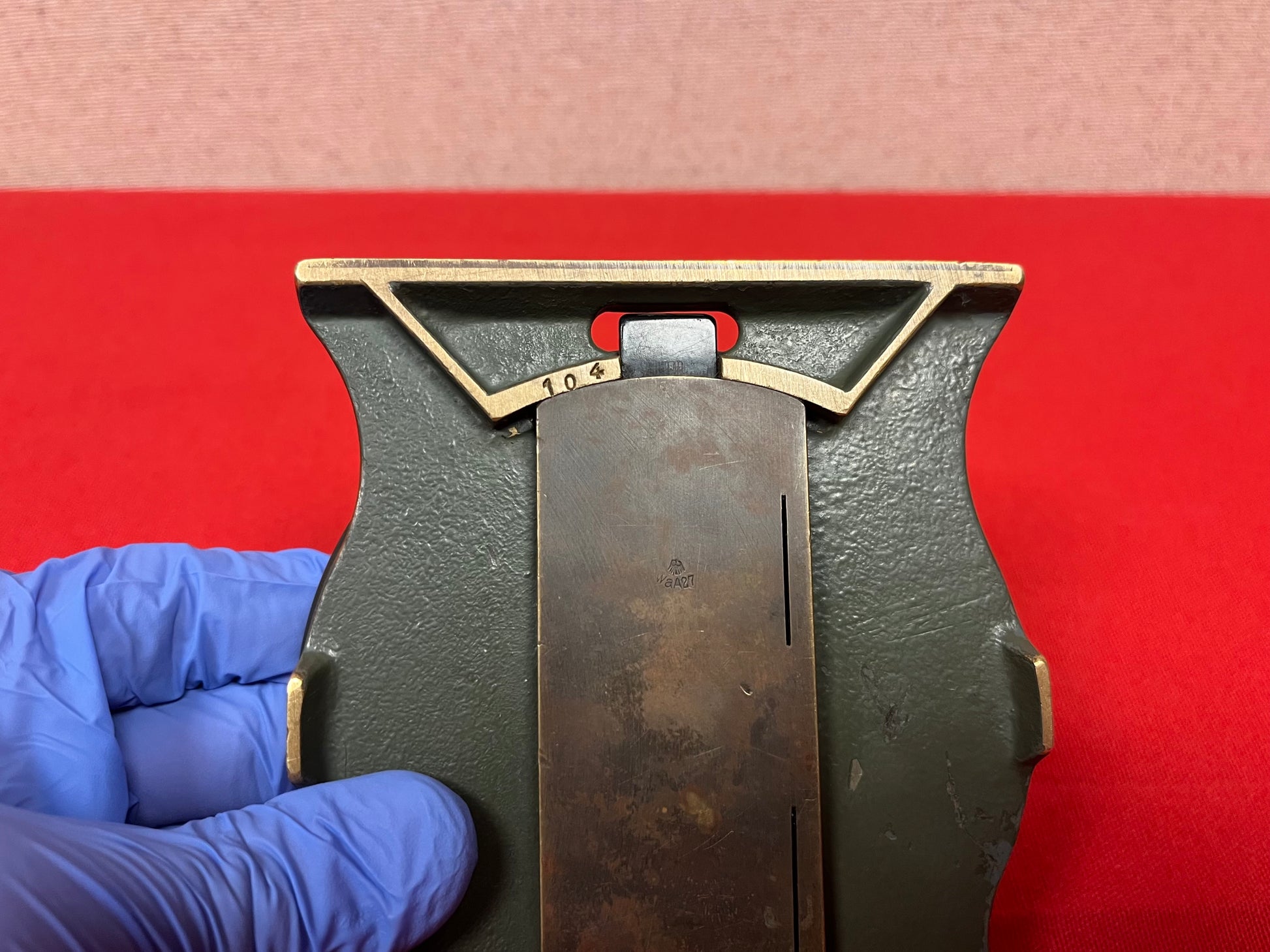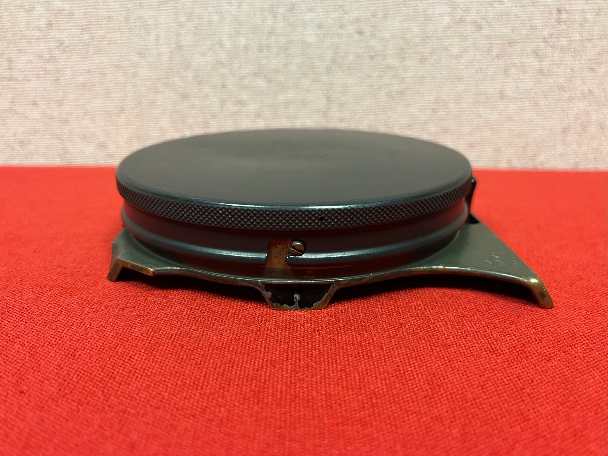 Authentic WW1 German artillery compass. This artillery compass is manufactured by C.P Goerz of Berlin, model # BR7100. Made of solid brass. Maker mark and model are located on the dial face. Working order - Bubble, needle, and stop function operate correctly. Complete with protective cap. Glass is free of scratches “a light haze where the needle has rested over the years” could be cleaned. Also stamped WaA27 on the reverse. Great piece for the WW1 collector. Ready for display!