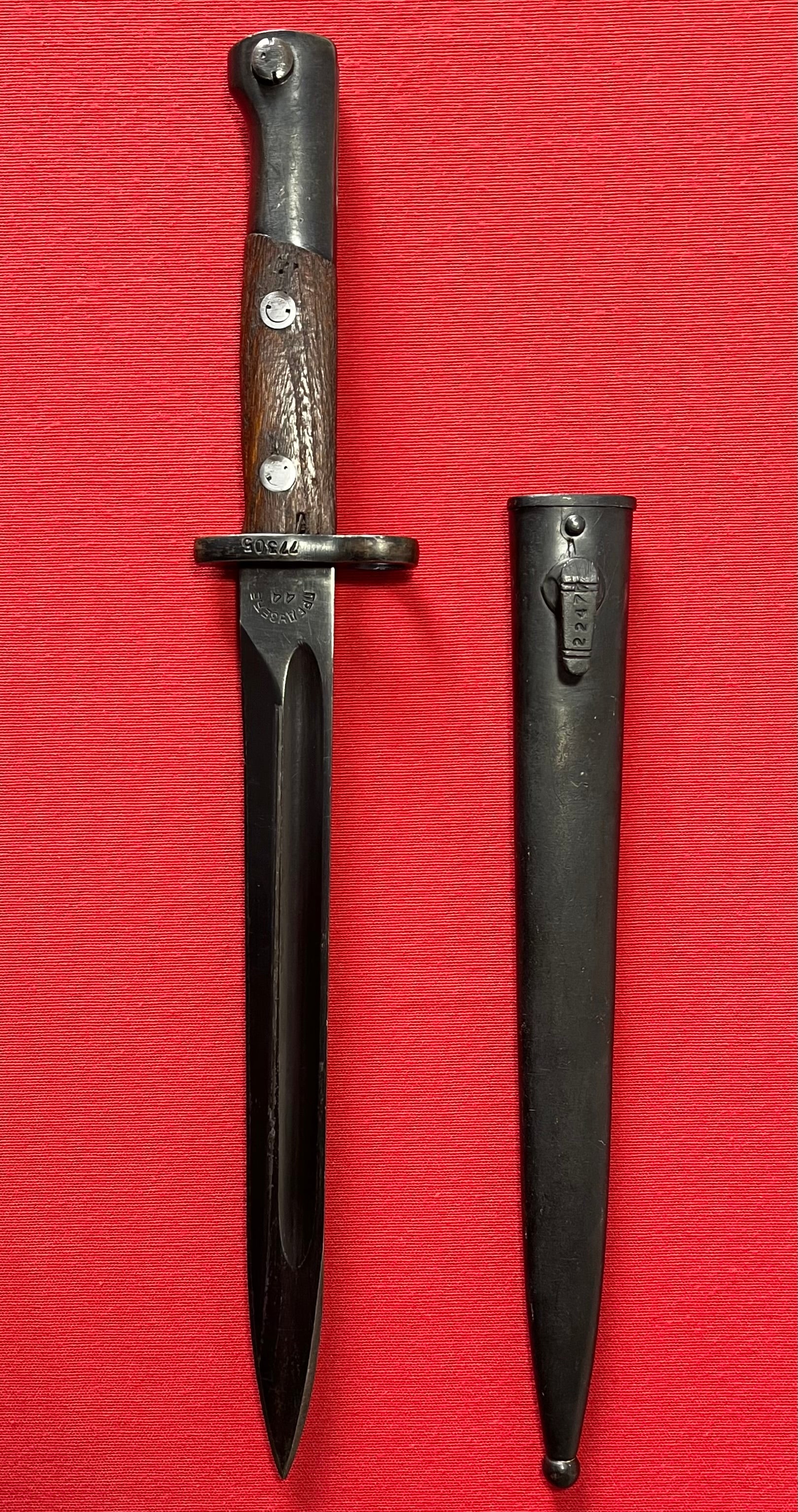 Appears to be unissued / Very clean with minimal wear / Number 77305 on cross guard / Size- 15 Inches overall with a 9 3/4 Inch Blade / Blade is parkerized with number 44 on the Ricasso